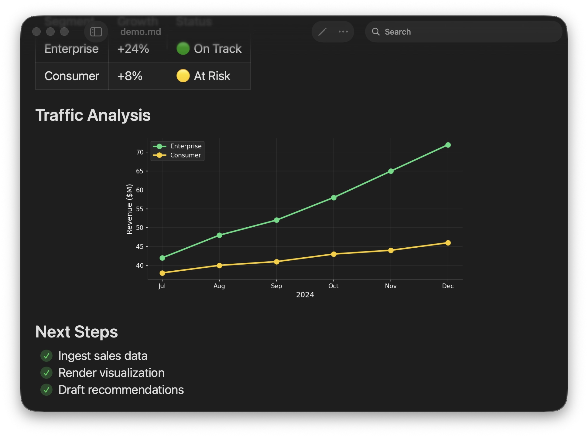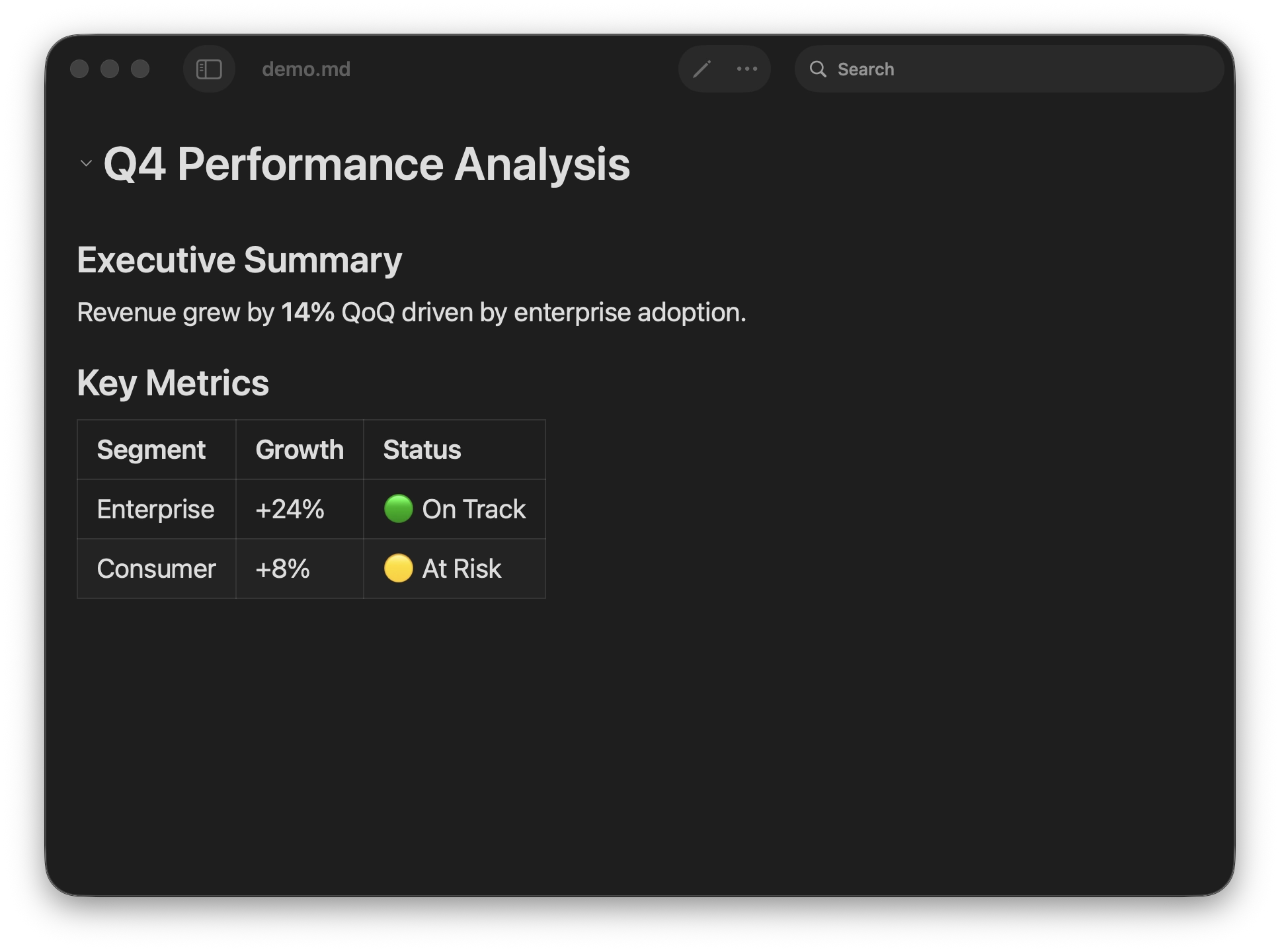 An AI-first markdown viewer for macOS that renders your markdown files in real-time. Perfect for AI coding assistants, documentation workflows, and anyone who works with markdown files.